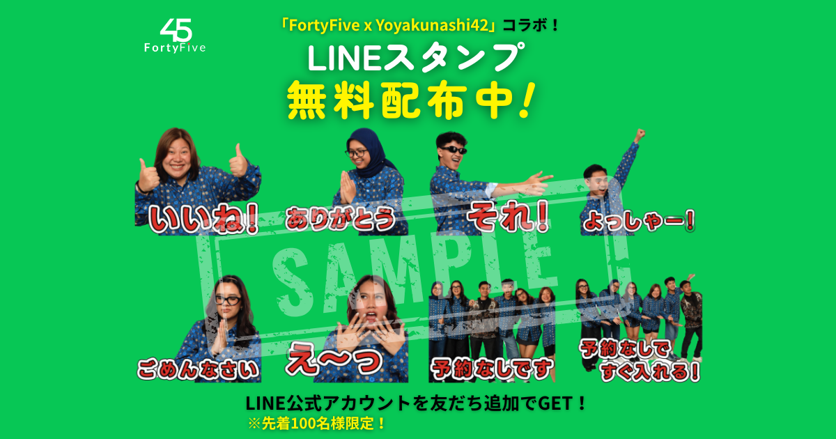 FortyFive45(フォーティーファイブ)は、ショップアンバサダーである「ヨヤクナシガールズ」(Yoyakunashi42)とのコラボレーション企画として実施したLINEスタンプ無料配布の第1弾について、先着100名様分の配布を終了したことをお知らせいたします。