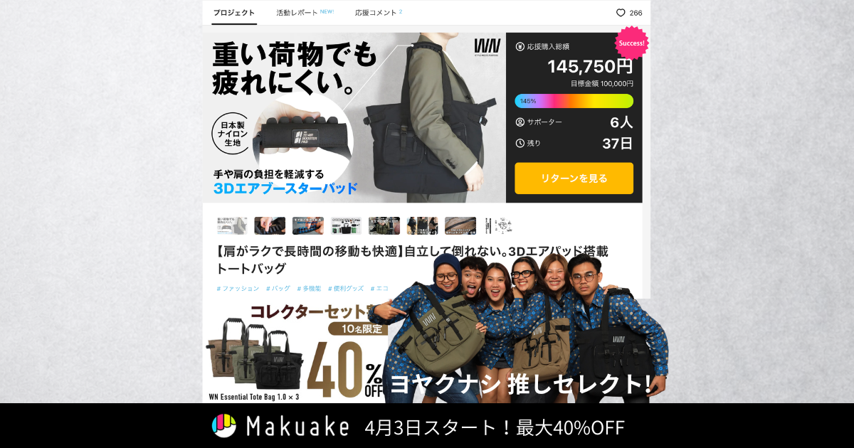 本日、WN Essential Tote Bag 1.0 のプロジェクトがMakuakeにてスタートいたしました。